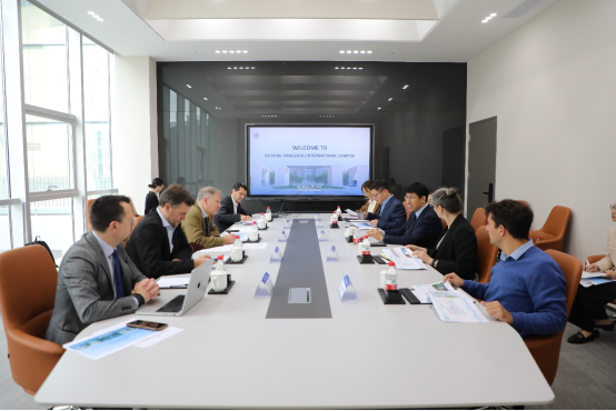 On November 9th, a delegation from Groupe des Écoles Centrale visited Beihang Hangzhou International Campus, Among the delegates were Thomas Maurer (the President of École Centrale de Lille), Mathieu Thomas de la Pintière (the Director of the International Department at École Centrale de Lille), Richard Perkins (the Director of the International Department at École Centrale de Lyon), Lavinia Stanescu (the Director of the International Department at CentraleSupélec) and Olivier Boiron (the Director of the International Department at École Centrale de Marseille). Zhao Weisheng, Vice President of Beihang University, met with the delegation. Ying Weidong, Deputy Party Committee Secretary of Zhongfa Aviation Institute of Beihang University, and representatives from the FLE department and the Office of International Affairs accompanied.