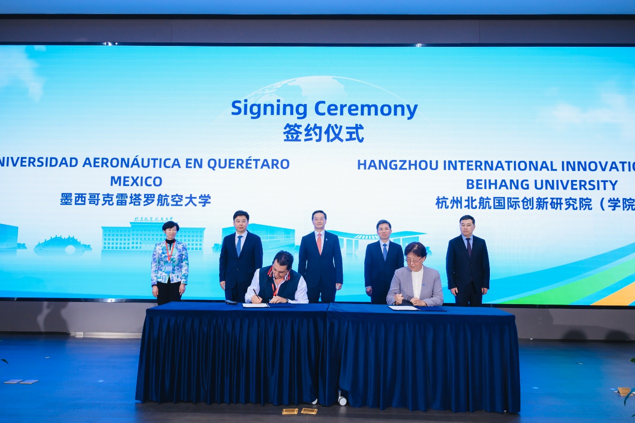 Enrique Sosa, President of the Universidad Aeronáutica en Querétaro in Mexico, and Hong Guanxin, Deputy Party Secretary and Director of H3I, jointly signed the “Memorandum of Cooperation between Hangzhou International Innovation Institute of Beihang University and Aeronautical University of Queretaro in Mexico.” According to the agreement, the two institutions will collaborate in research and education, faculty exchanges, student exchange programs, and the joint organization of academic conferences.