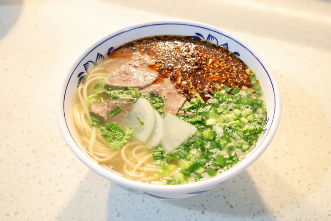With the clear soup, chewy noodles, and fresh beef