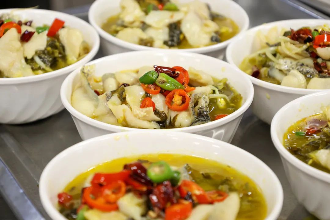 These dishes include stewed beef with potatoes, boiled fish combined with Sichuan pickles in golden soup, and boiled pork slices